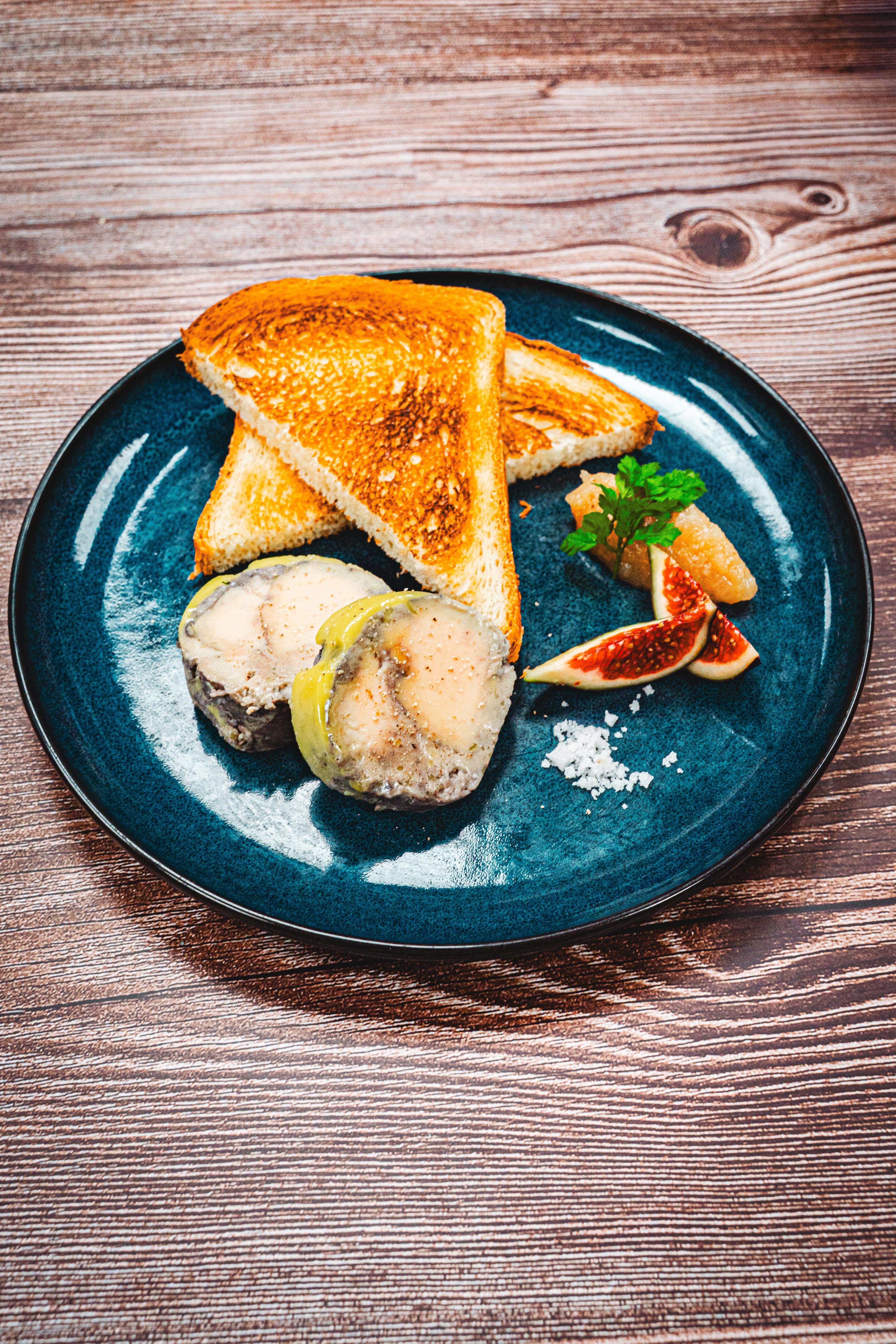 Notre foie Gras sélectionné par le chef, confectionné avec des foies de canard Extra français de 1ʳᵉ qualité. Notre saumon Mariné par nos soins selon la recette Et Toque !
