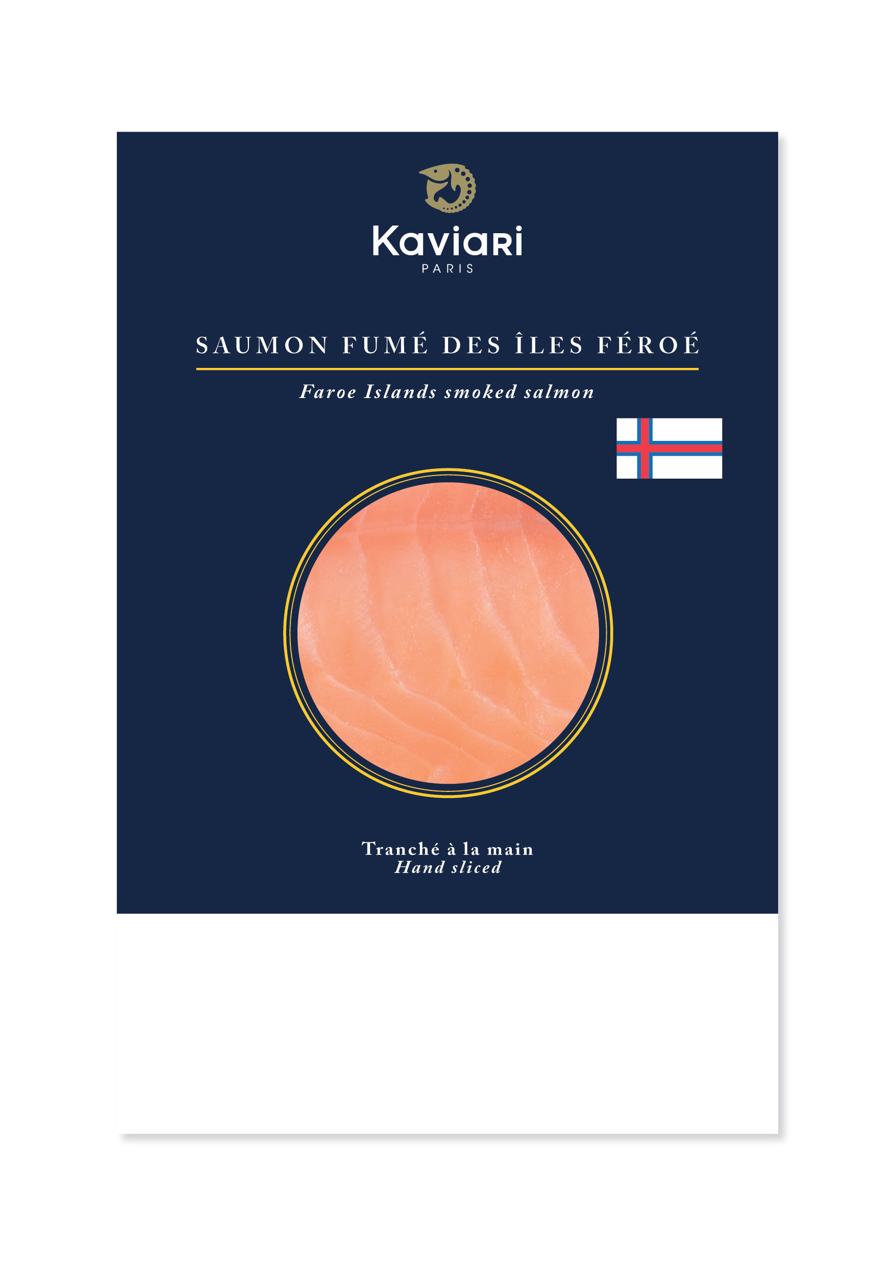 AllergenlisteIngrédients : Saumon (Salmo salar), sel,. Bande de Saumon fumé élevé aux Iles Féroé de la maison Kaviari tranché finement à la main 1,2 à 1,5 kg sous vide DLC 15 jours à partir de votre date de retrait. À conserver au réfrigérateur entre 0 et 4 °C